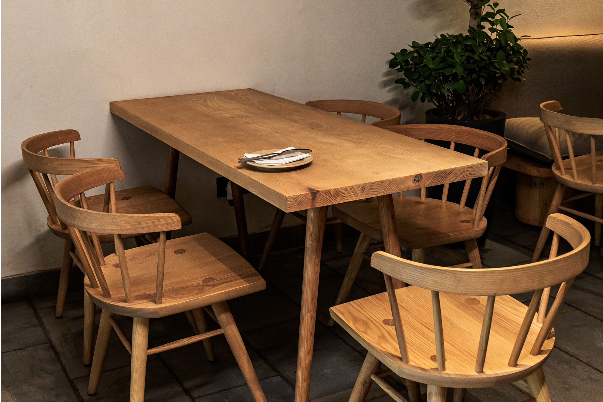 Solid Bench truly captures the vibe — clean, honest, and grounded in nature. Every piece is crafted from white ash, celebrating raw textures and simple beauty. Spindle architecture runs through loungers, tables, stools, bar stools, and chairs, creating a cohesive language that feels timeless, functional, and warm. From material to finish, everything is thoughtfully aligned with their calm, earthy brand aesthetic.