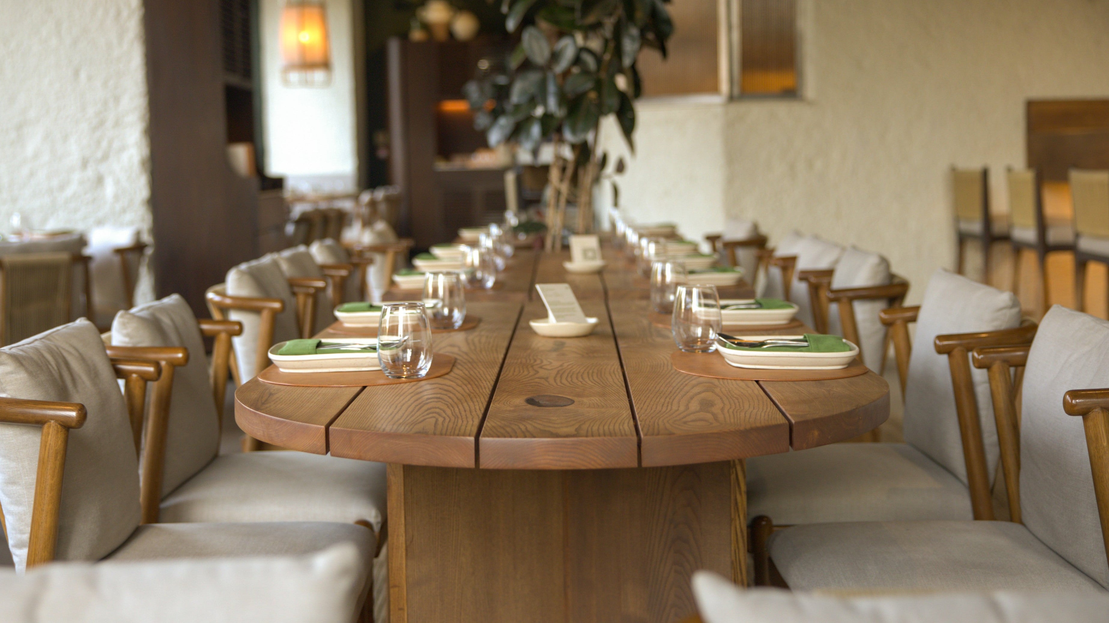 Understanding the brand’s narrative, we developed a design language that echoes its aesthetic - natural materials, organic forms, and a sense of togetherness. Using sustainably sourced wood and traditional joinery techniques, we crafted elegant tables, a bar counter along the ledge, and a long community table seamlessly integrated with plants to foster connection and warmth.