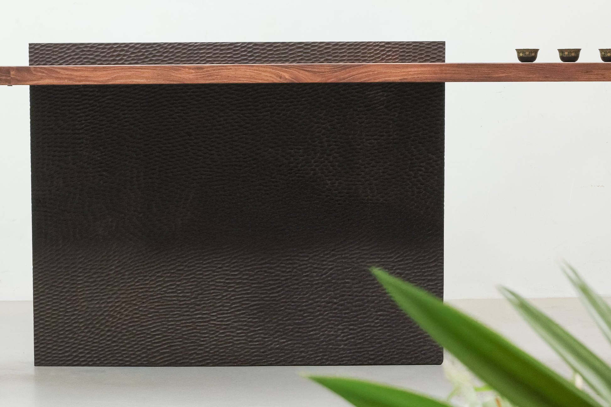 Each carved texture reveals the hand of the maker, celebrating the tactile beauty of materiality while preserving a minimalist silhouette stained with chocolate oil. It bridges tradition and modernity, grounding itself in timeless craft while presenting a form that feels strikingly contemporary. Designed to be both functional and poetic, it holds presence without overwhelming, offering a meditative experience through simplicity. A piece that embodies flow, permanence, and the sculptural essence of design.